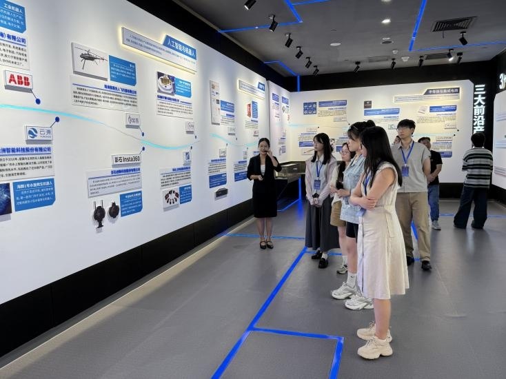 在高新区科技创新展示厅,通过主题分区、案例展示的方式,同学们直观了解珠海在人工智能、生物医药、新能源等战略性新兴产业领域的前沿布局,深刻体会到高新区作为珠海科技创新主引擎的示范作用。