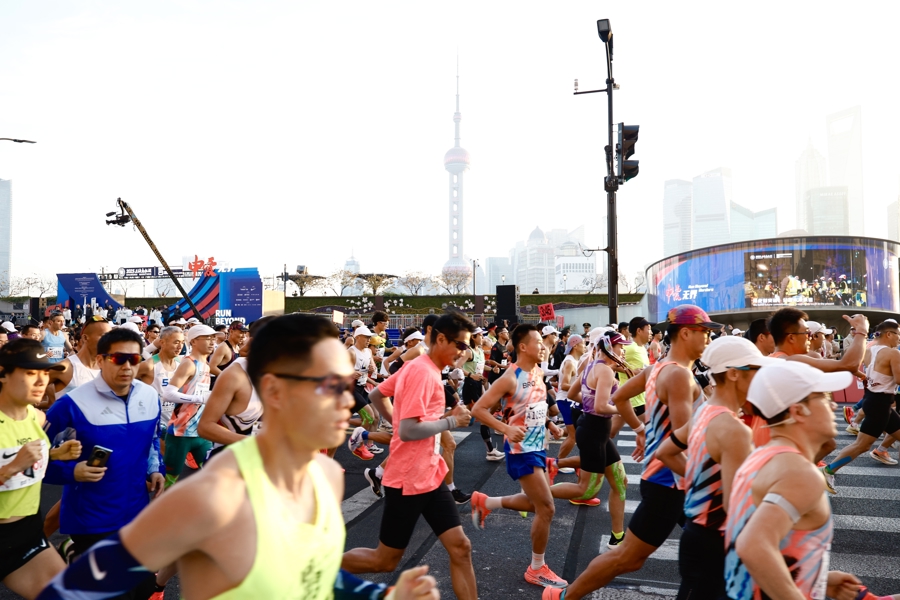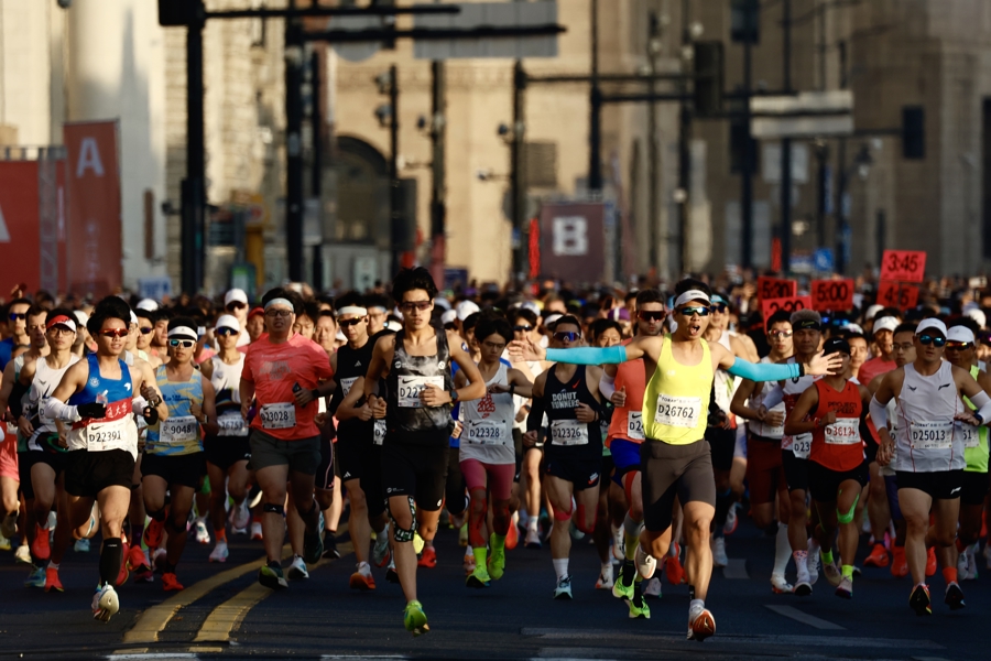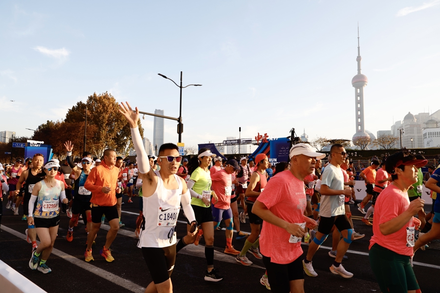 金色的晨曦洒落浦江两岸,深秋的上海被奔跑的脚步声唤醒。