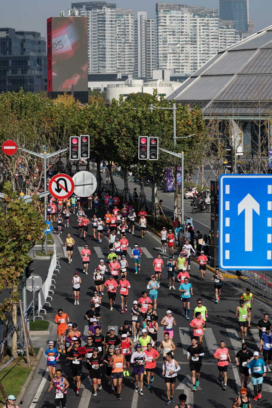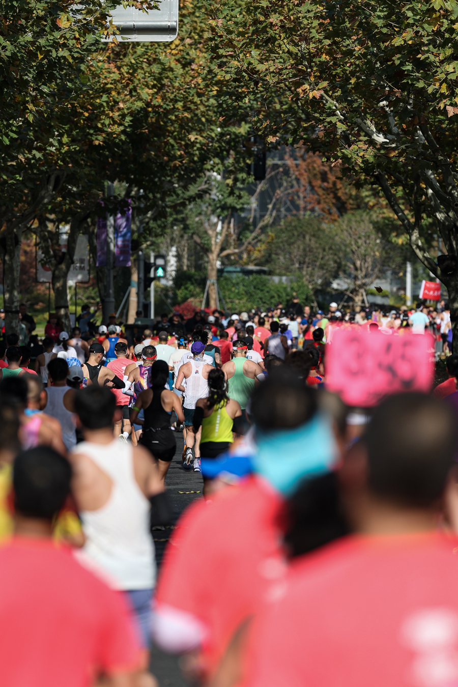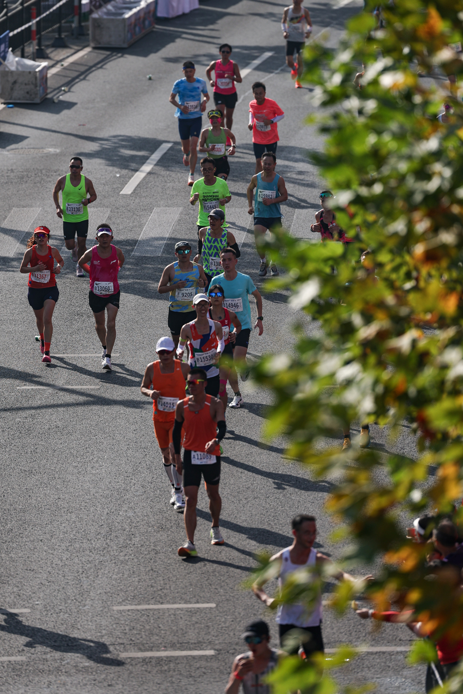 2.3万名跑者在42.195公里的赛道上用脚步感受城市脉搏,与斑斓秋景共同绘就一幅属于申城的活力画卷。