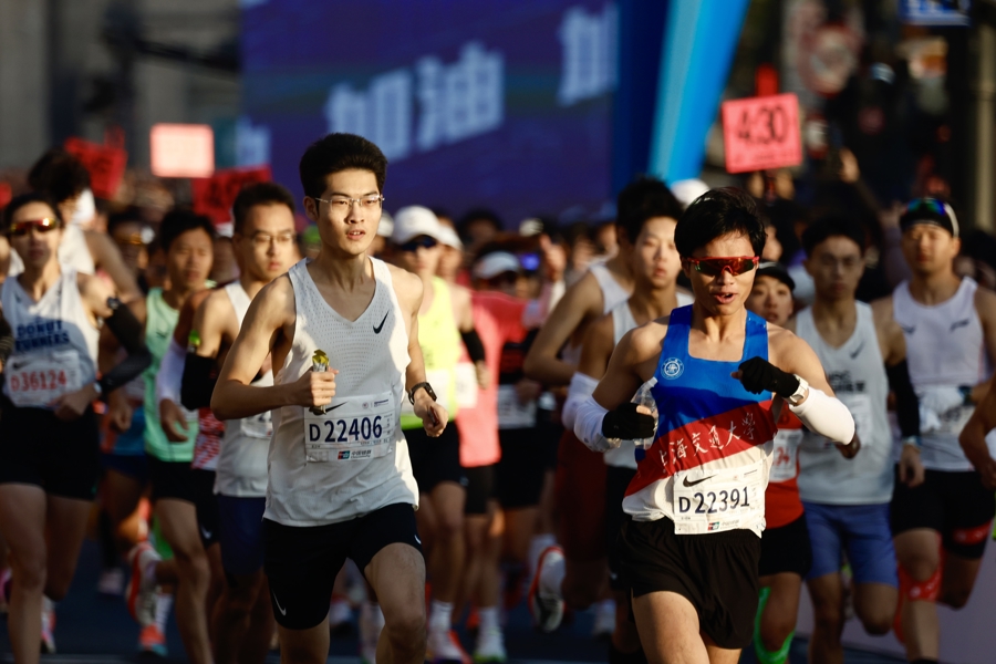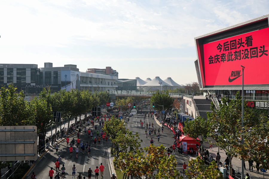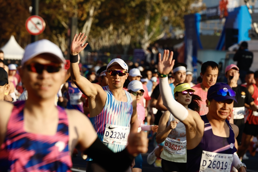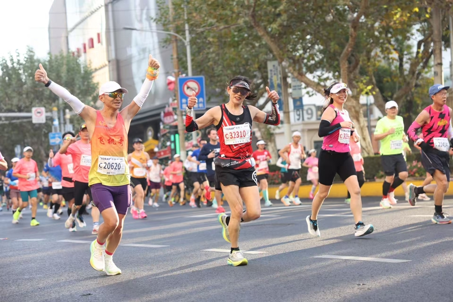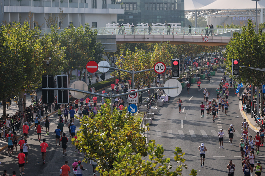 2.3万名跑者在42.195公里的赛道上用脚步感受城市脉搏,与斑斓秋景共同绘就一幅属于申城的活力画卷。