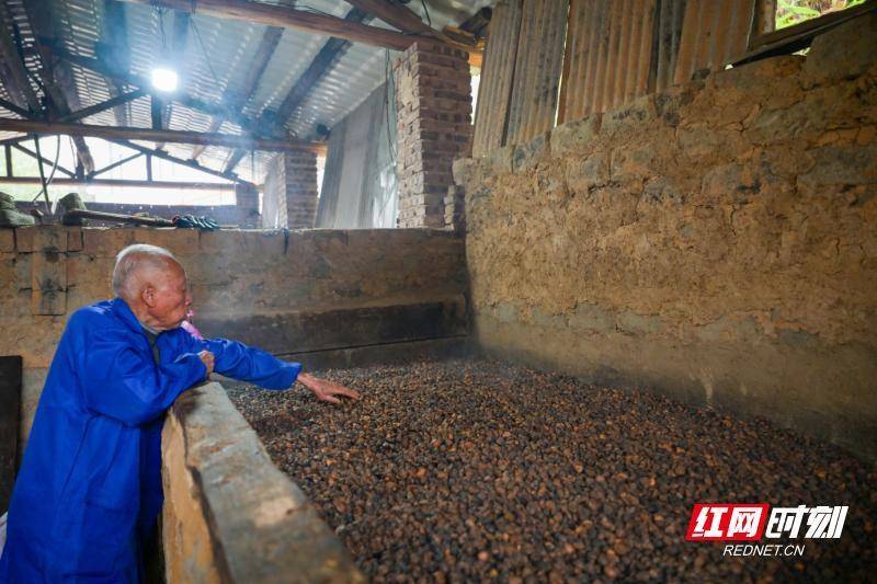 12月12日,资兴市州门司镇杨公塘村榨油坊保宇配资,村民在烘干茶籽。