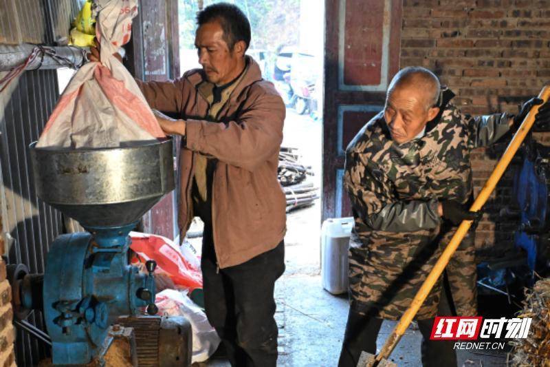 12月12日保宇配资,资兴市州门司镇杨公塘村榨油坊保宇配资,村民在碾制茶籽粉。